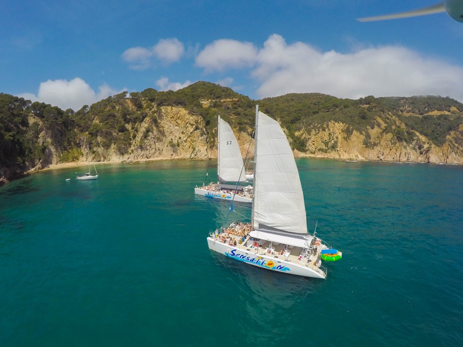 Ta wycieczka katamaranem jest idealna dla miłośników morza, którzy chcą dotrzeć do niedostępnych odcinków wybrzeża. Trwa około 4 godzin i odpływa z centralnego i łatwo dostępnego punktu w Lloret de Mar. Do wyboru są dwa harmonogramy - poranny i popołudniowy, przed zachodem słońca - ale każdy z nich obejmuje grilla, a także opcje wegetariańskie. Podczas wycieczki dostępne są również napoje alkoholowe, bezalkoholowe i woda.